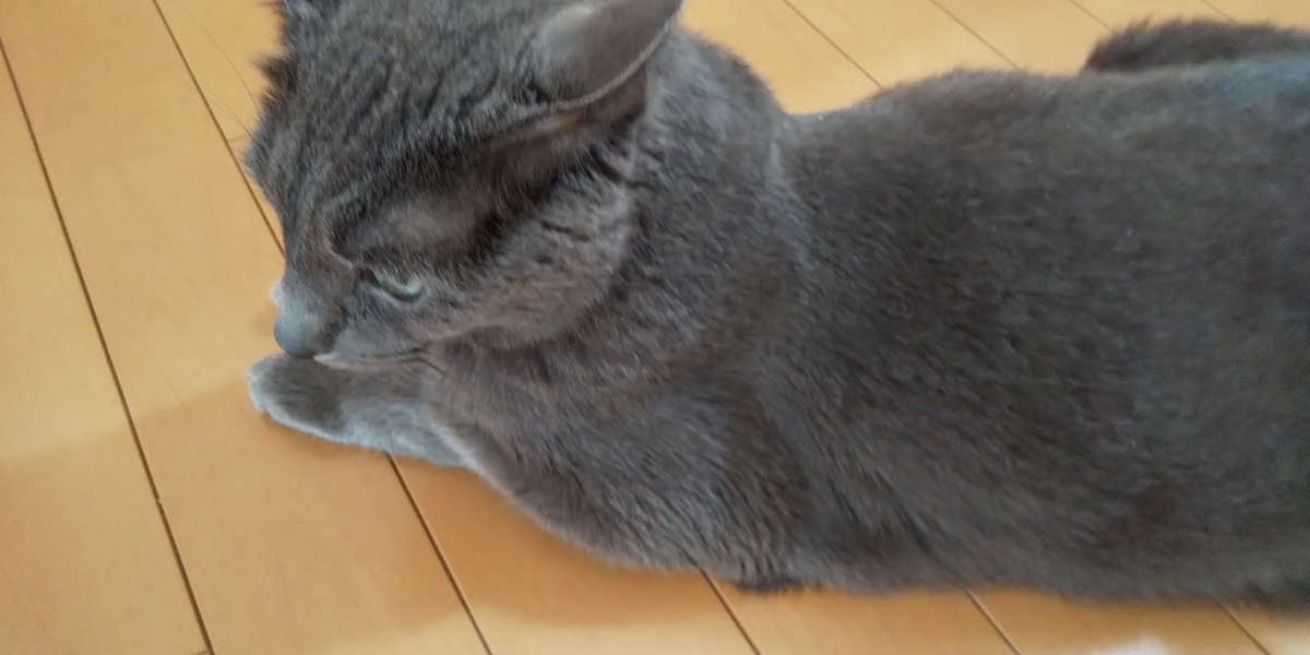 ミーちゃんに似た、ロシアンブルー色の猫型クッションを買いました。